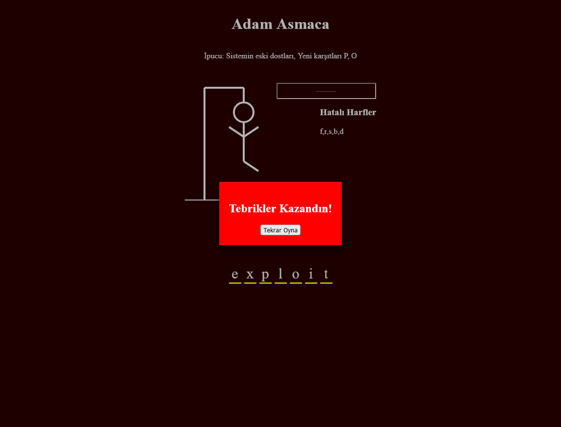 'Adam Asmaca', 'Zar', 'Snake', 'Forum', 'Sözcük Tahmin', 'Game Over', 'Success']