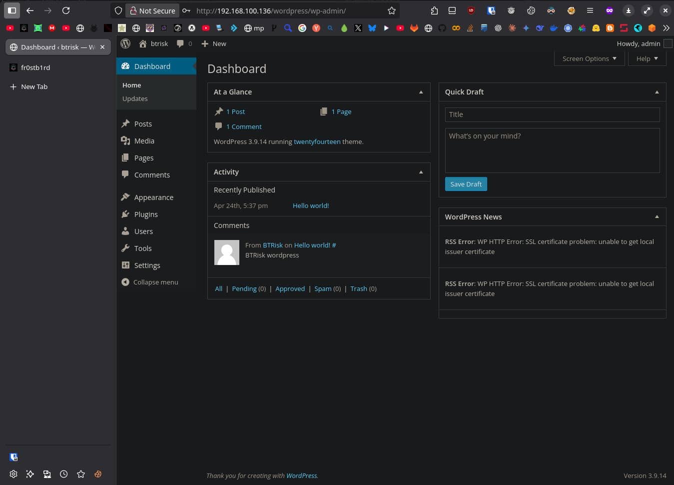 dirbvewpscanile web uygulamasındaki gizli dizinler ve dosyaları keşfettik (robots.txt,/wordpress/,/wp-admin/).- WordPress kullanıcı adlarını brute-force yöntemiyle tespit ettik ve admin hesabına giriş sağladık.